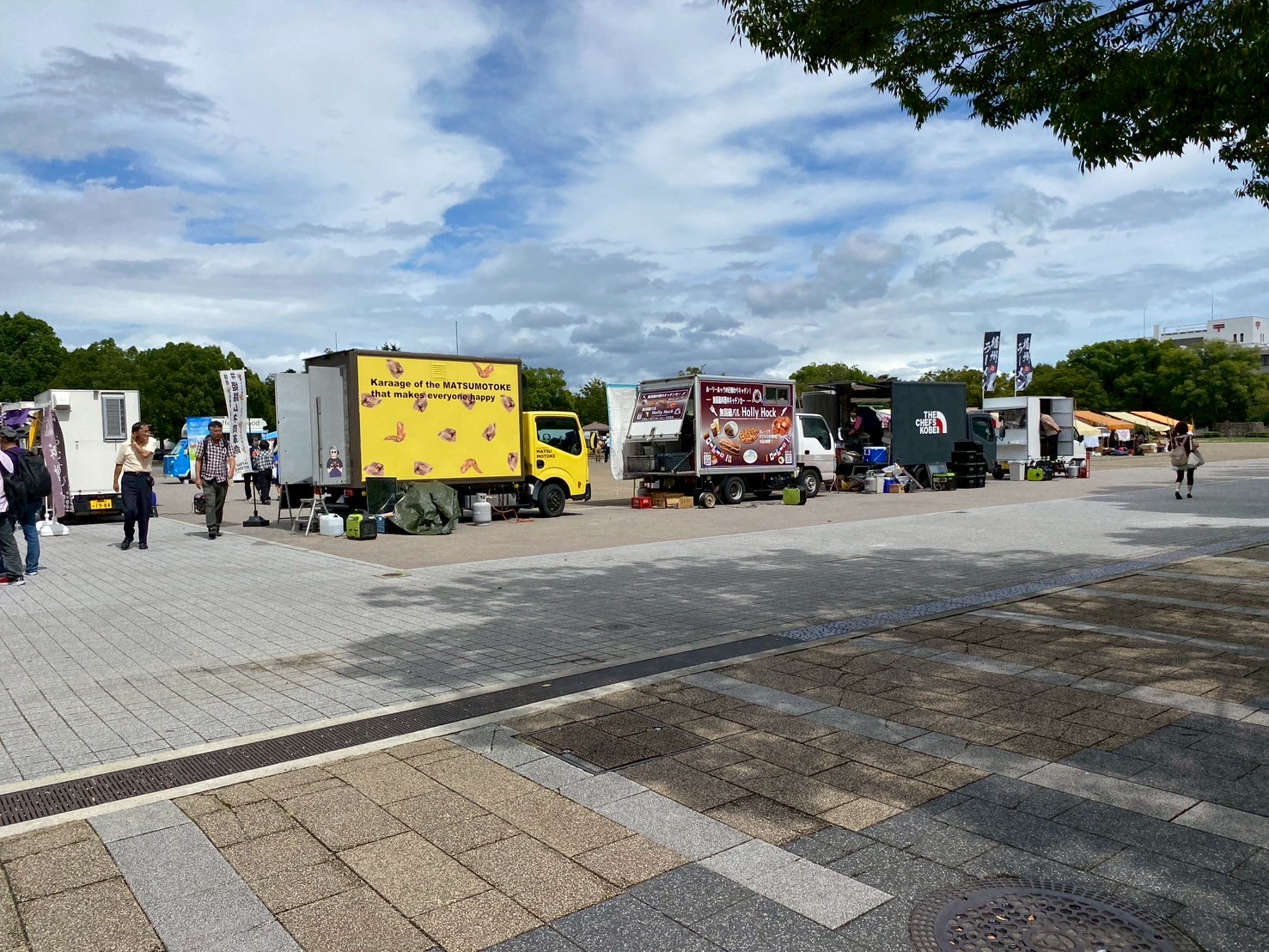 9/20追記 朝7時50分頃 大手前公園で青空バザールみたいなのが始まってました。