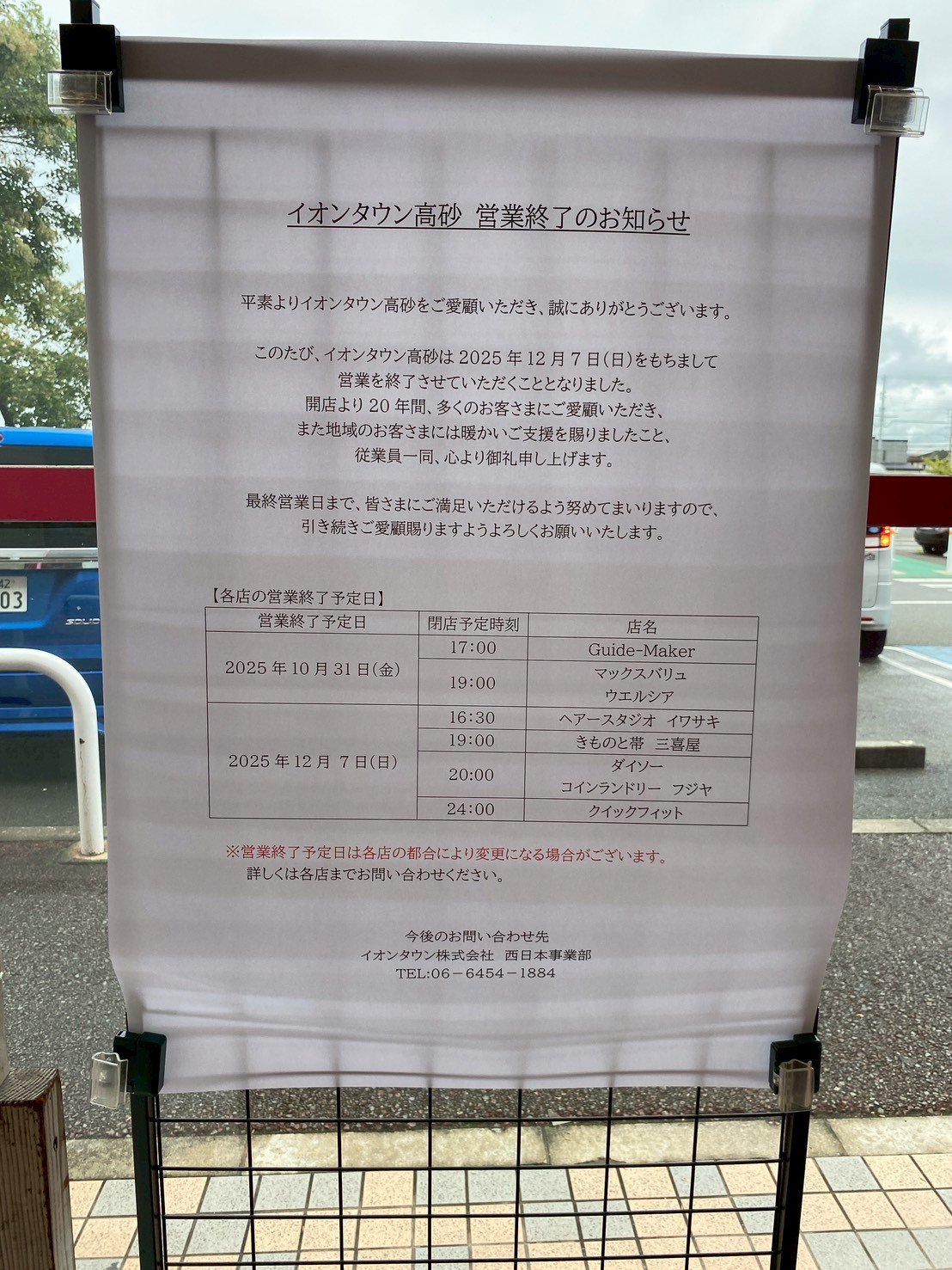 イオンタウン高砂が2025年12月7日wもって営業終了するみたいです。