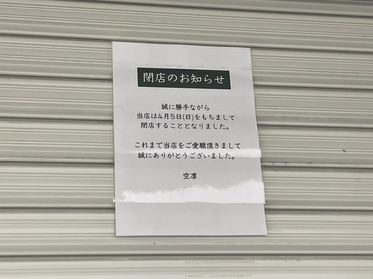 4月5日をもって閉店
