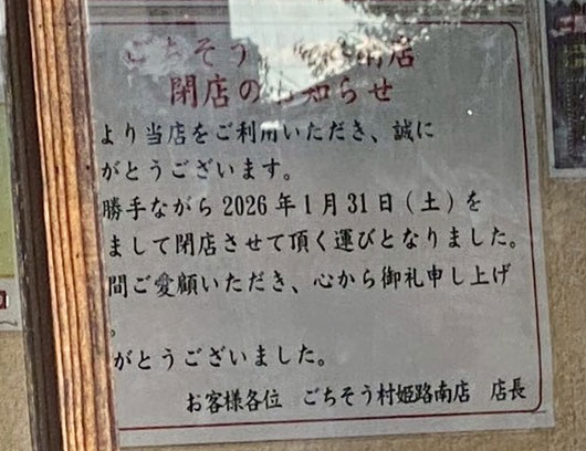 ごちそう村姫路南店が閉店するそうです!