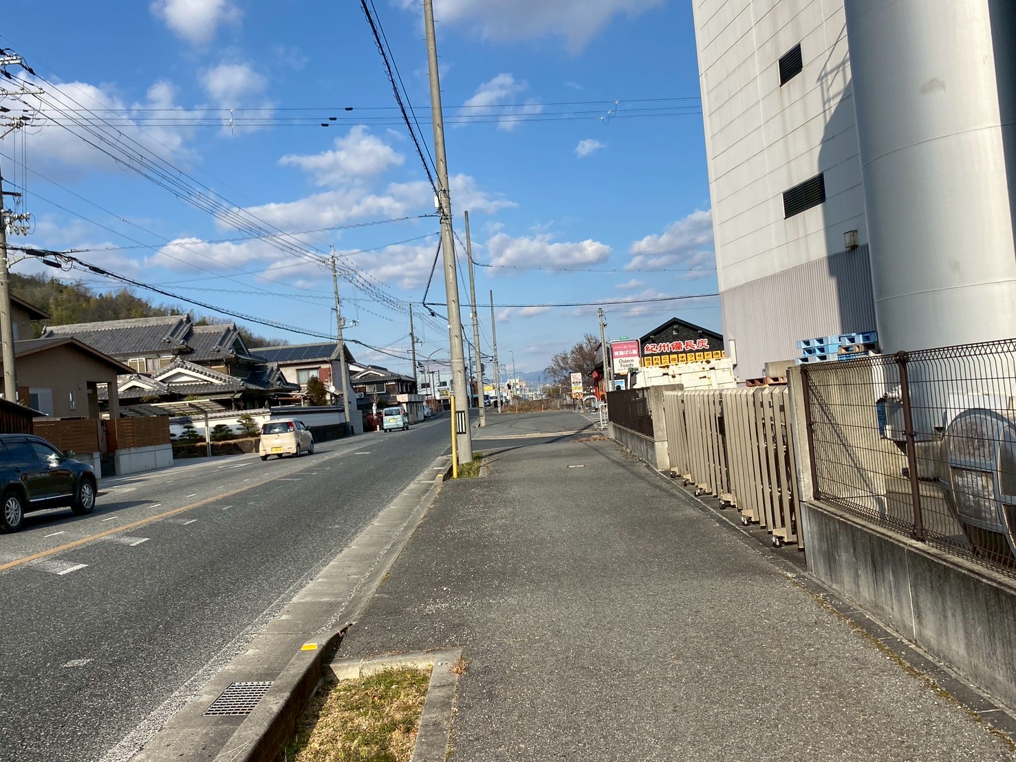 312号線沿い、斜め向かいに水喜屋。ネスレ日本株式会社 姫路工場の向こうに、ハローズ香寺店の看板が見えます。
