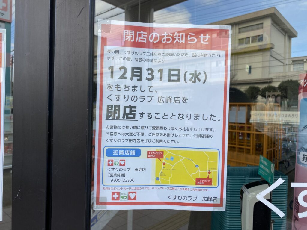 くすりのラブ広峰店が2025年12月31日で閉店している