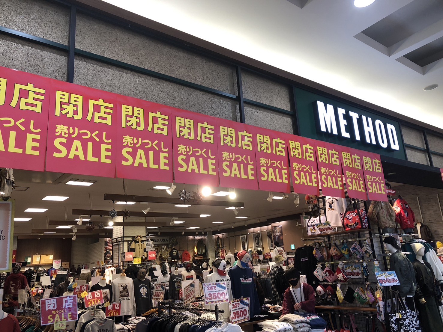 イオンモール姫路大津の『METHOD』ってセレクトショップが閉店するみたい。閉店売り尽くしセールやってる