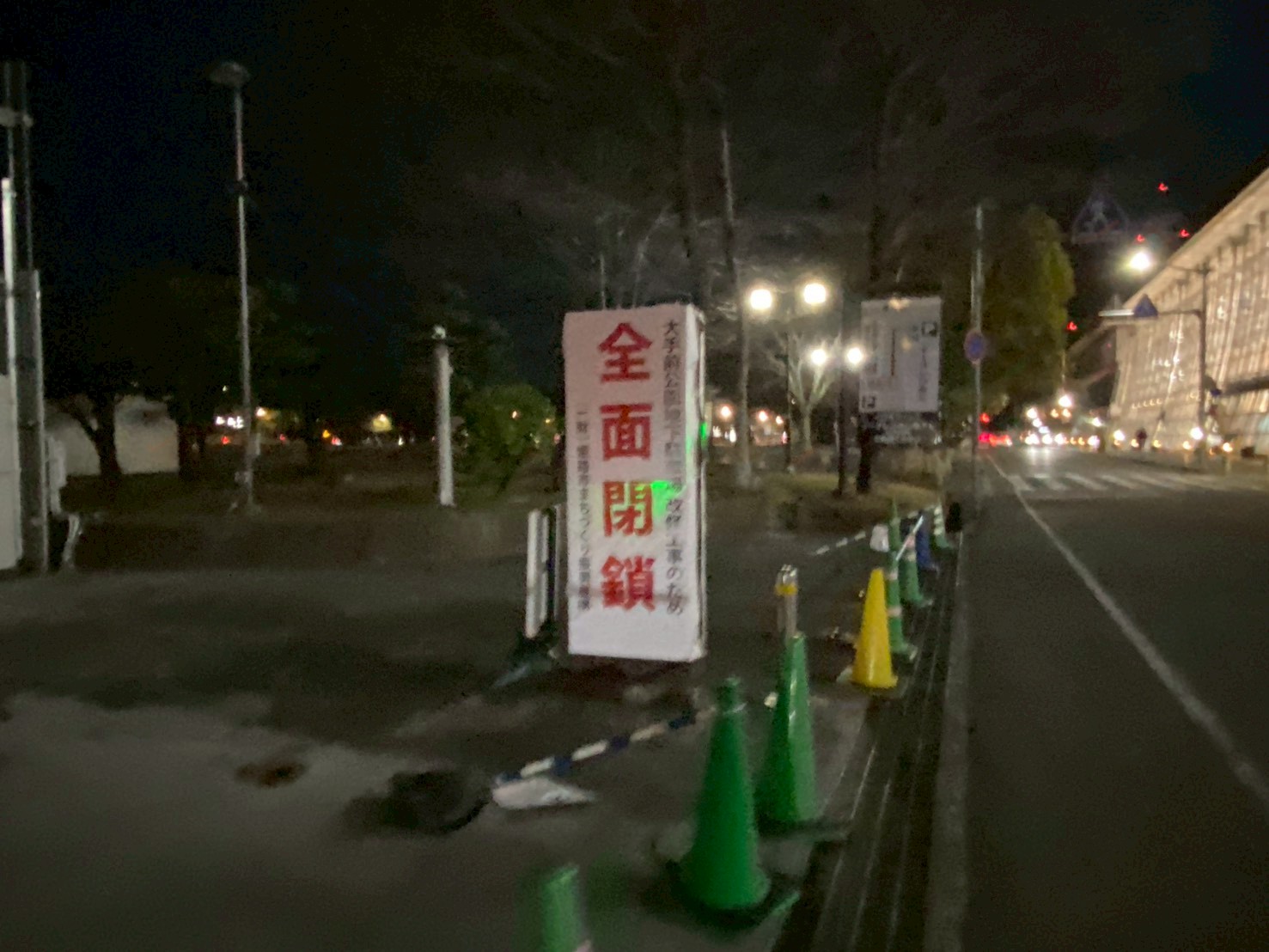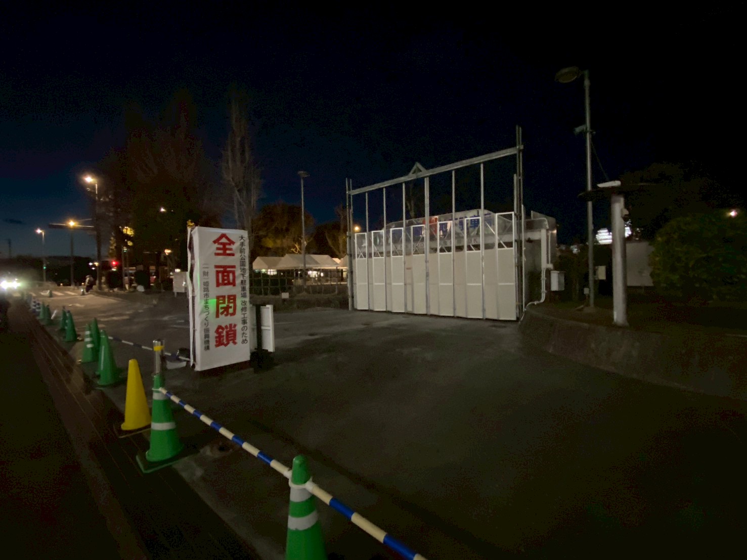 全面閉鎖の看板が設置されていました。大手前公園地下駐車場全面改修工事のため全面閉鎖とのこと。姫路市まちづくり振興機構の公式HPによると、令和8年2月20日(金)23時に封鎖。改修工事を実施するため、当面の間は利用できないようです。