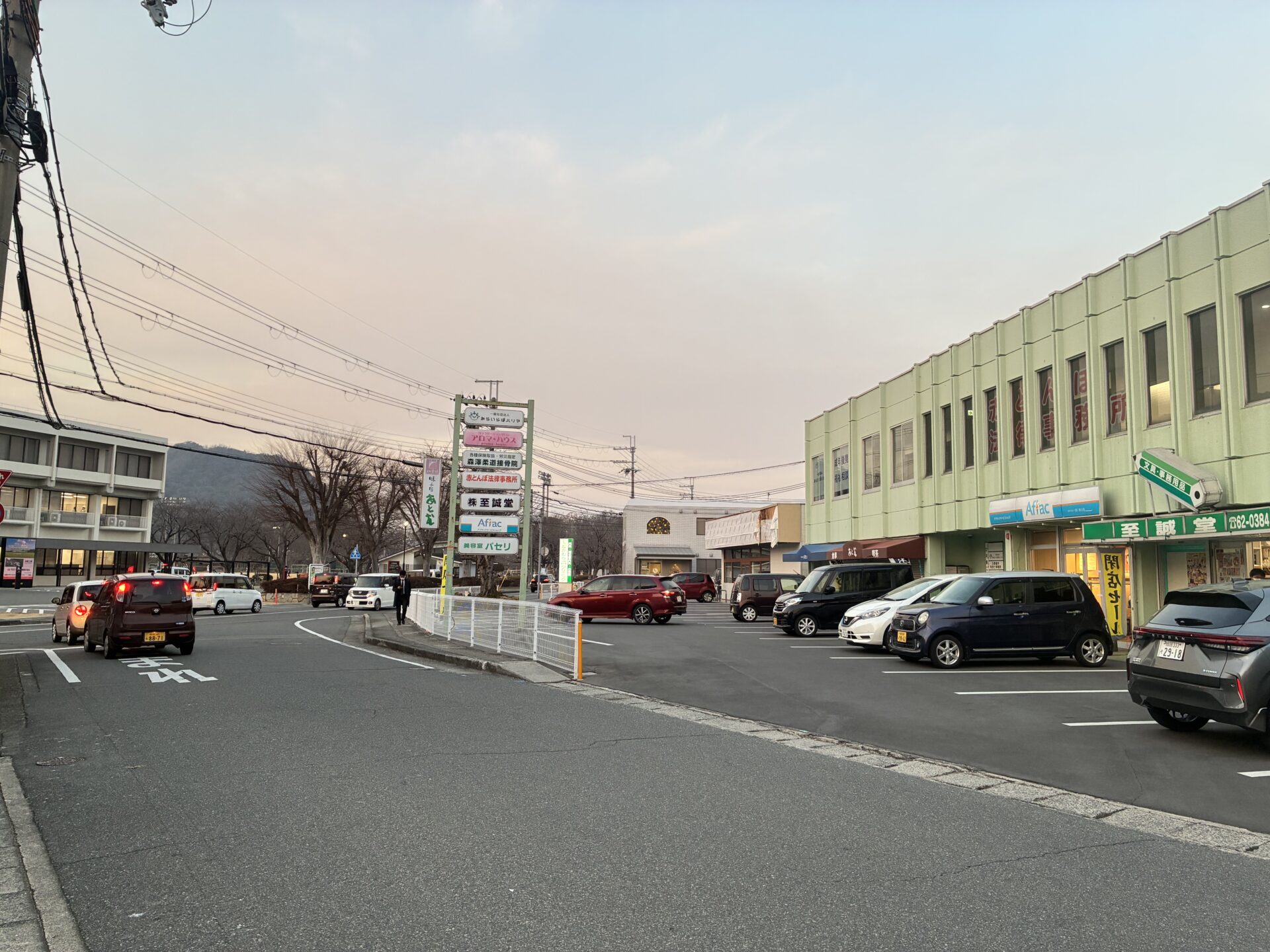 同じビルにはアフラックや喫茶店のあとむ。少し向こうにはなかむらクリニックや土井動物病院。