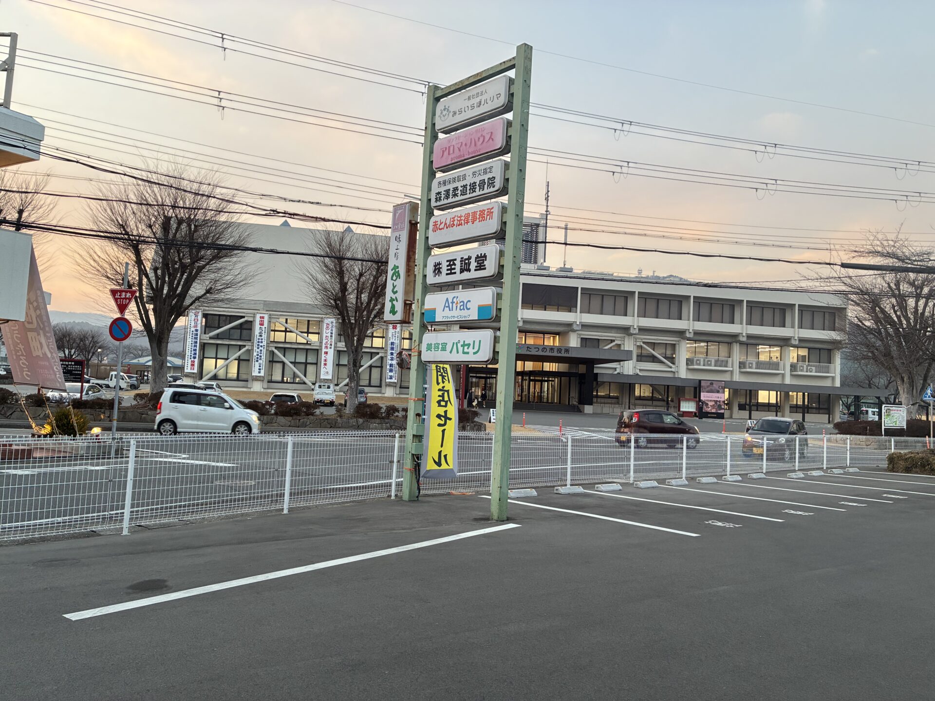 目の前はたつの市役所。