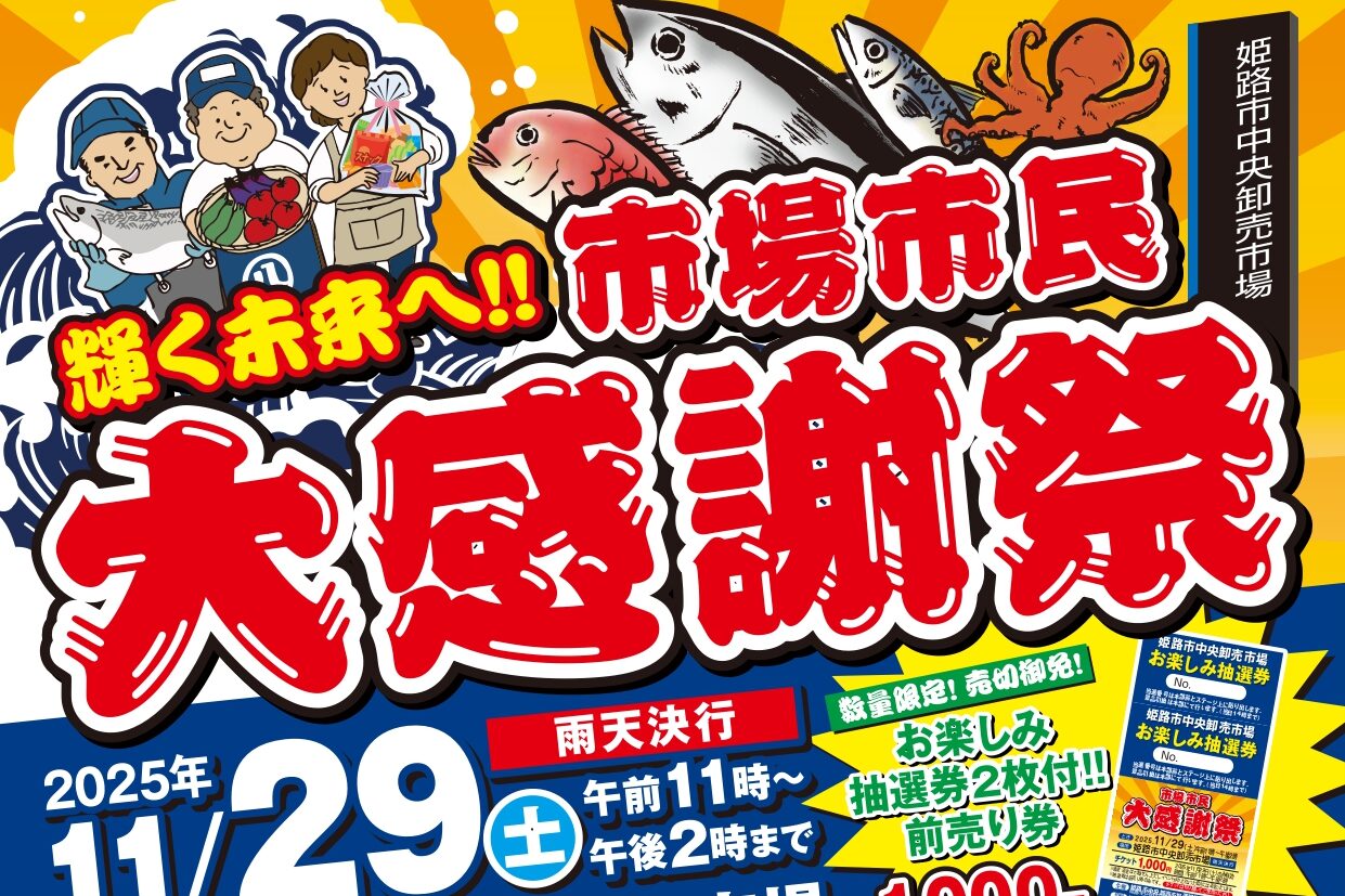 姫路市公式HPによると、2025年11月29日(土) 中央卸売市場にて、今年も盛大に市民大感謝祭が開催されるみたいです。入場無料。