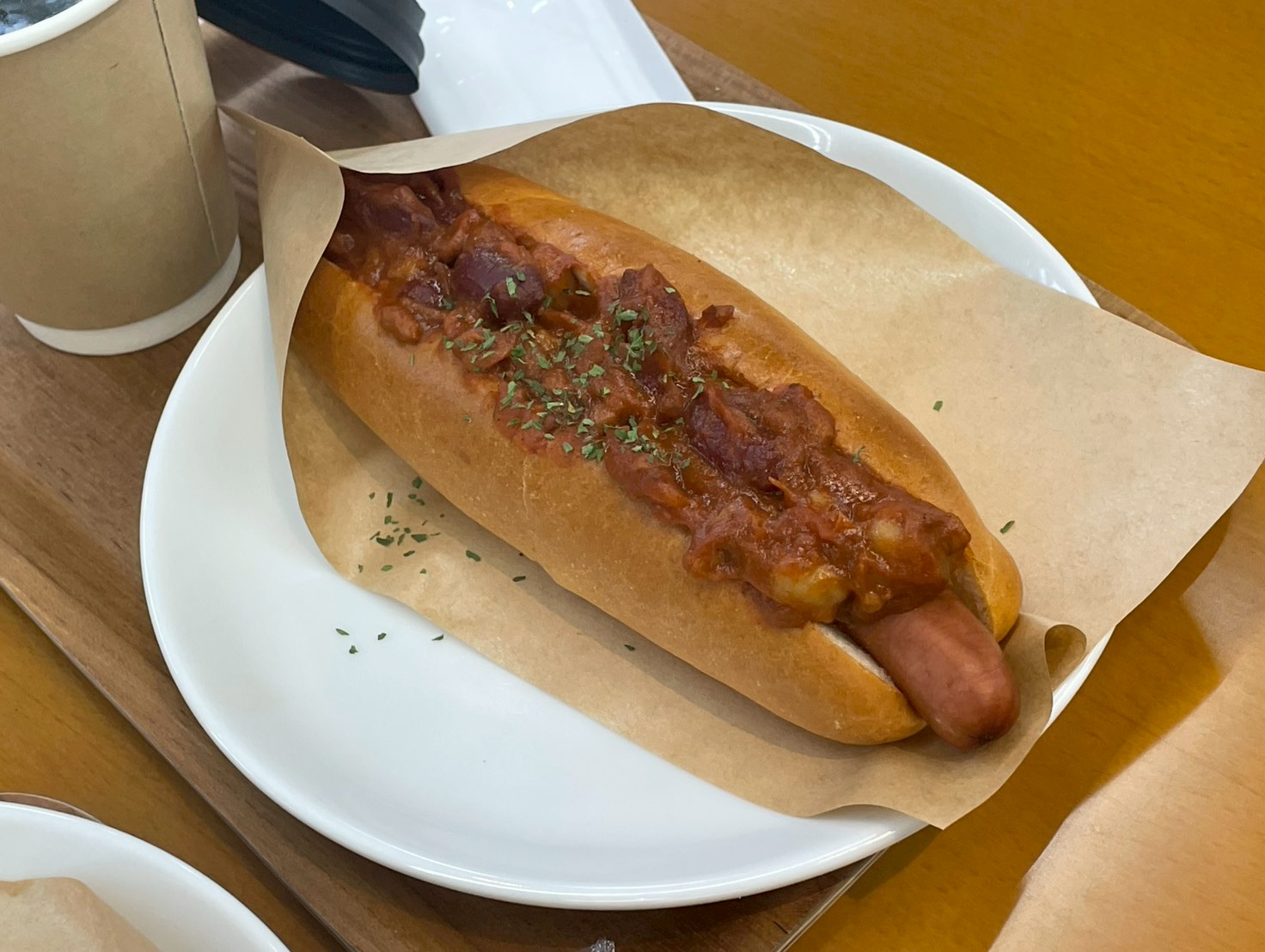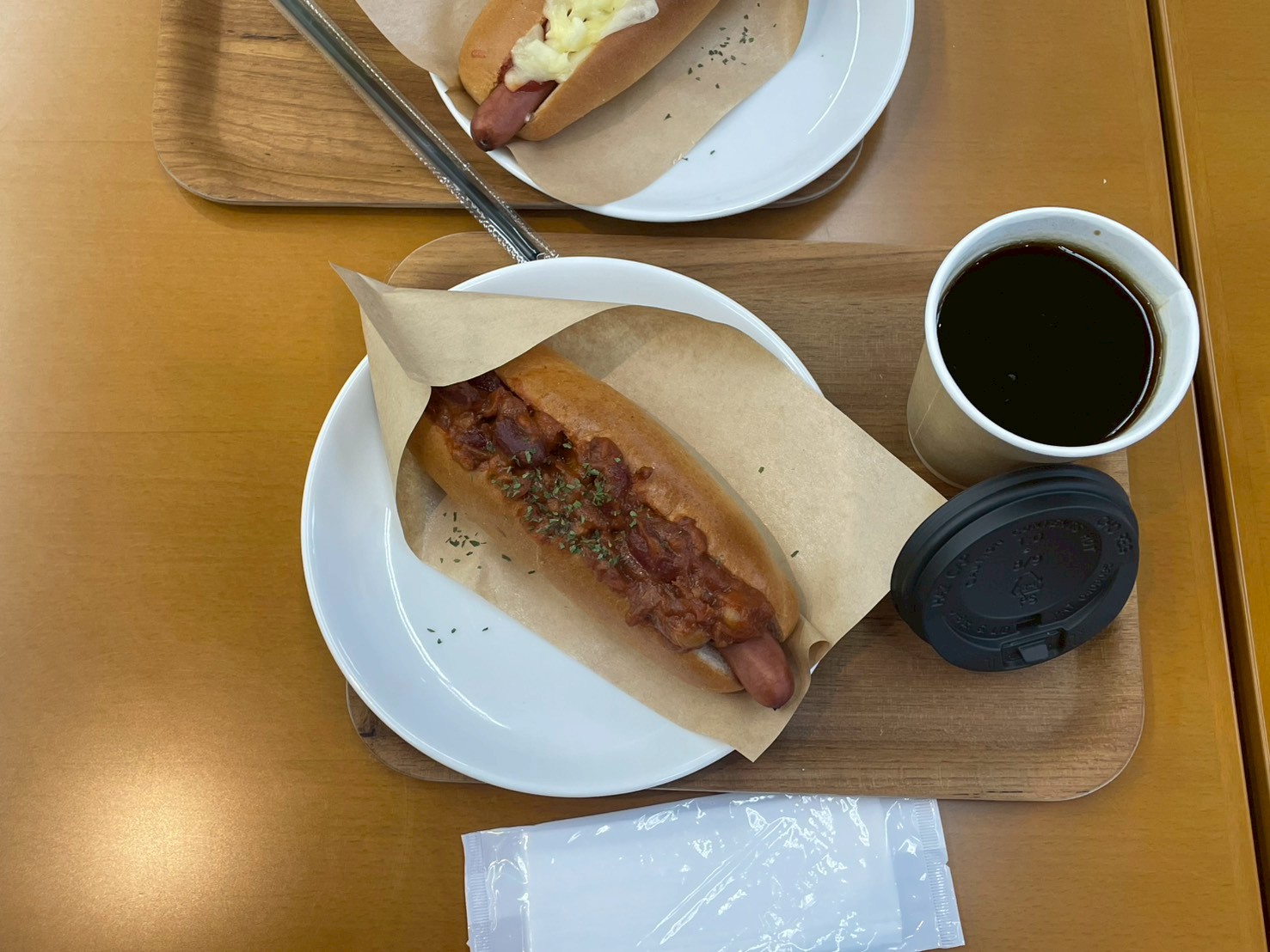 チリドックとコーヒー。コーヒーはあっさりめのブレンドでした。