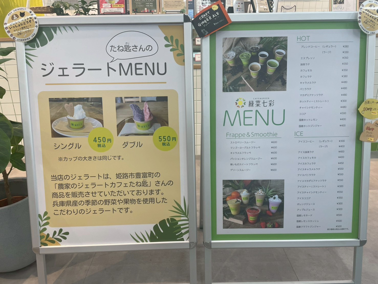 緑菜七彩 山吹店でチリドックとコーヒーをいただきました。ホームセンターのアグロガーデン山吹店内、観葉植物やお花なんかが置いてあるコーナー側の一角にあるカフェです。