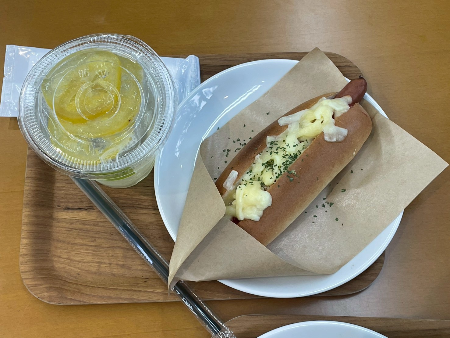 ホットドックとドリンクを注文したらセット割で100円引きになるみたい。後からレシートを見て気が付きました。