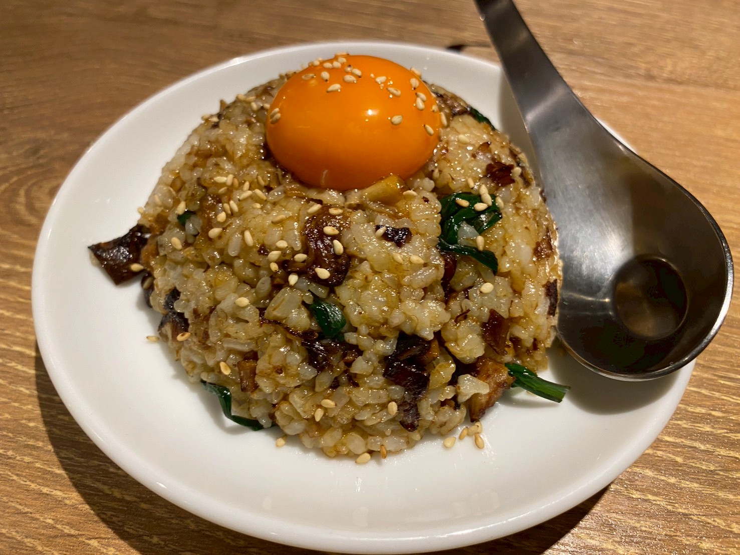 ニラ玉あてチャーハンは、あてにも〆にもなる一品。
