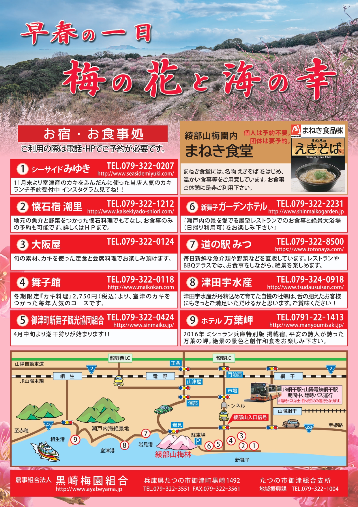 ※世界の梅公園北入口と新舞子駐車場からシャトルバスを運行します。関連たつの市HP