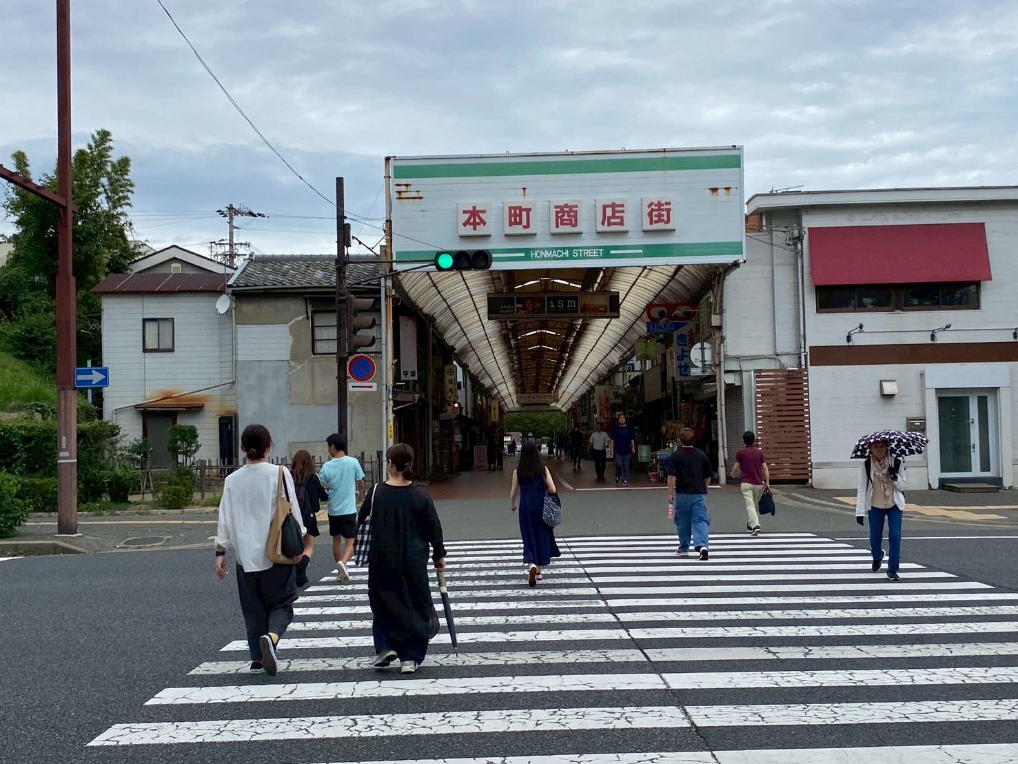 国道2号線側から本町商店街に入って64mほど進んだあたりです。