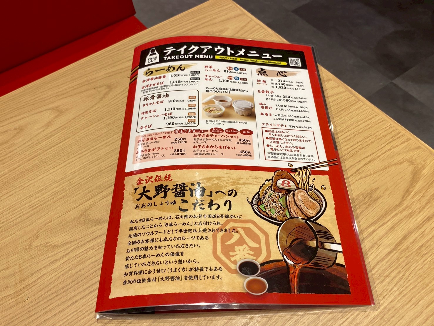 公式HPによると、金沢伝統の大野醤油を使用した特製スープと北海道産小麦100%の極太麺による新しいラーメンがいただけるみたいです。