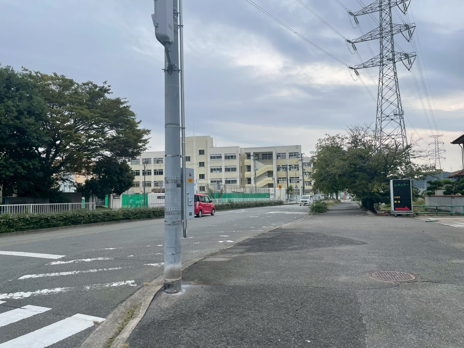 田寺7丁目の信号角地です。目の前に姫路市立図書館安室分館、その隣に安室児童センターがあります。