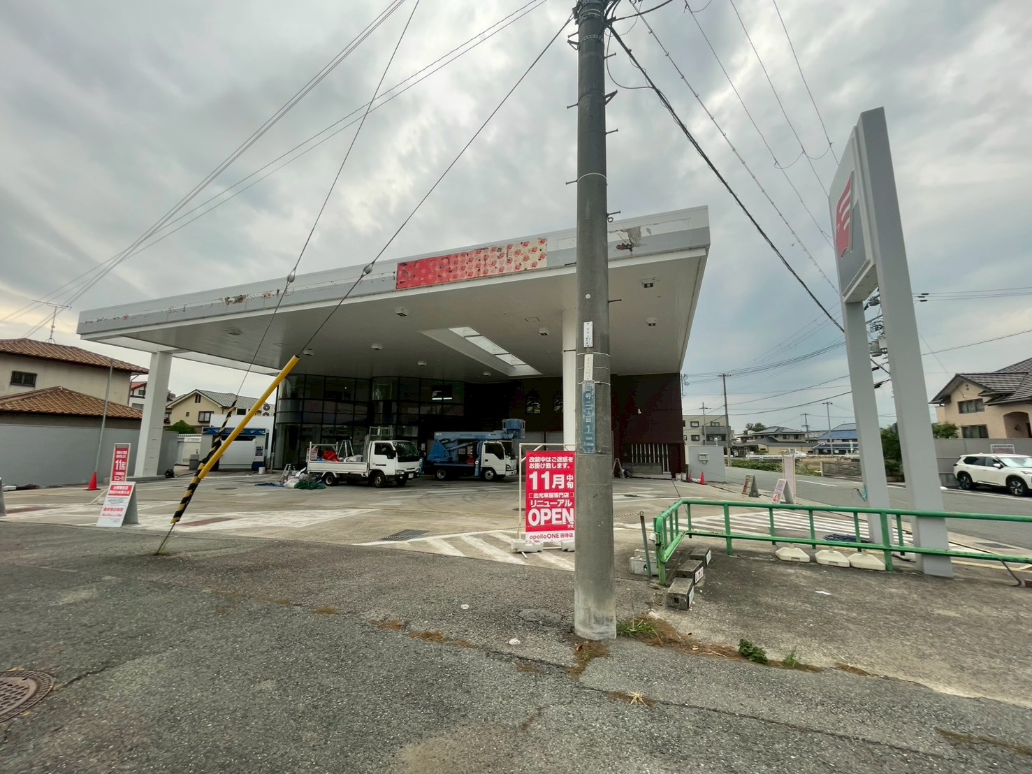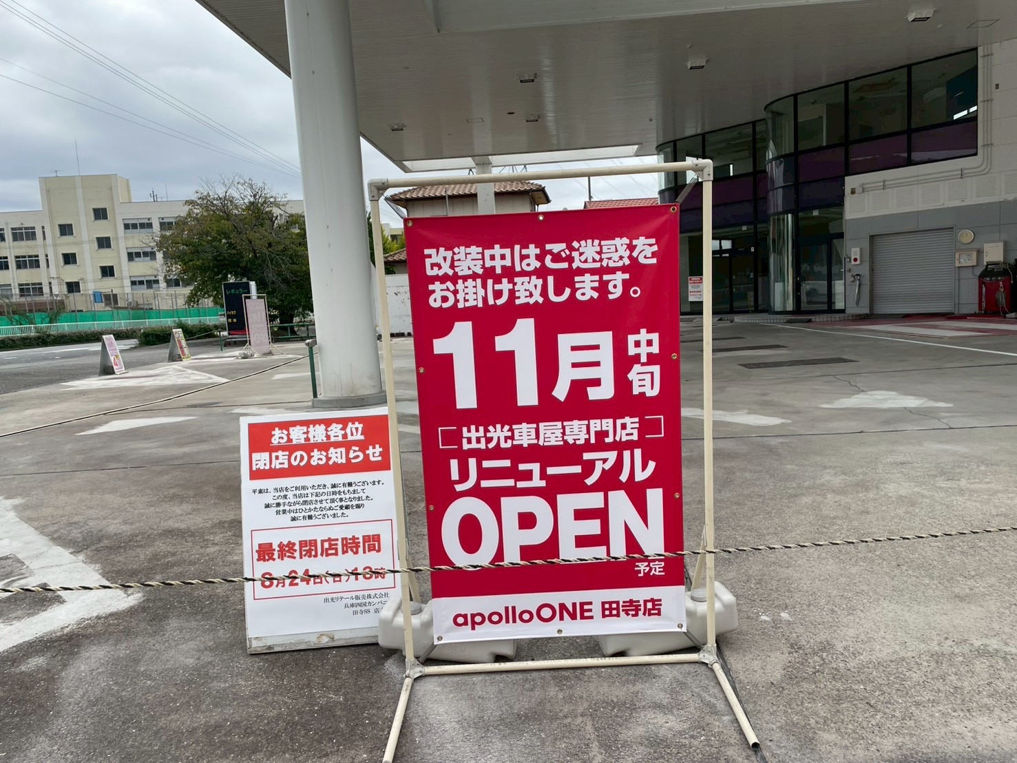 「11月中旬 出光車屋専門店リニューアルオープン」といったお知らせが掲示されていました。