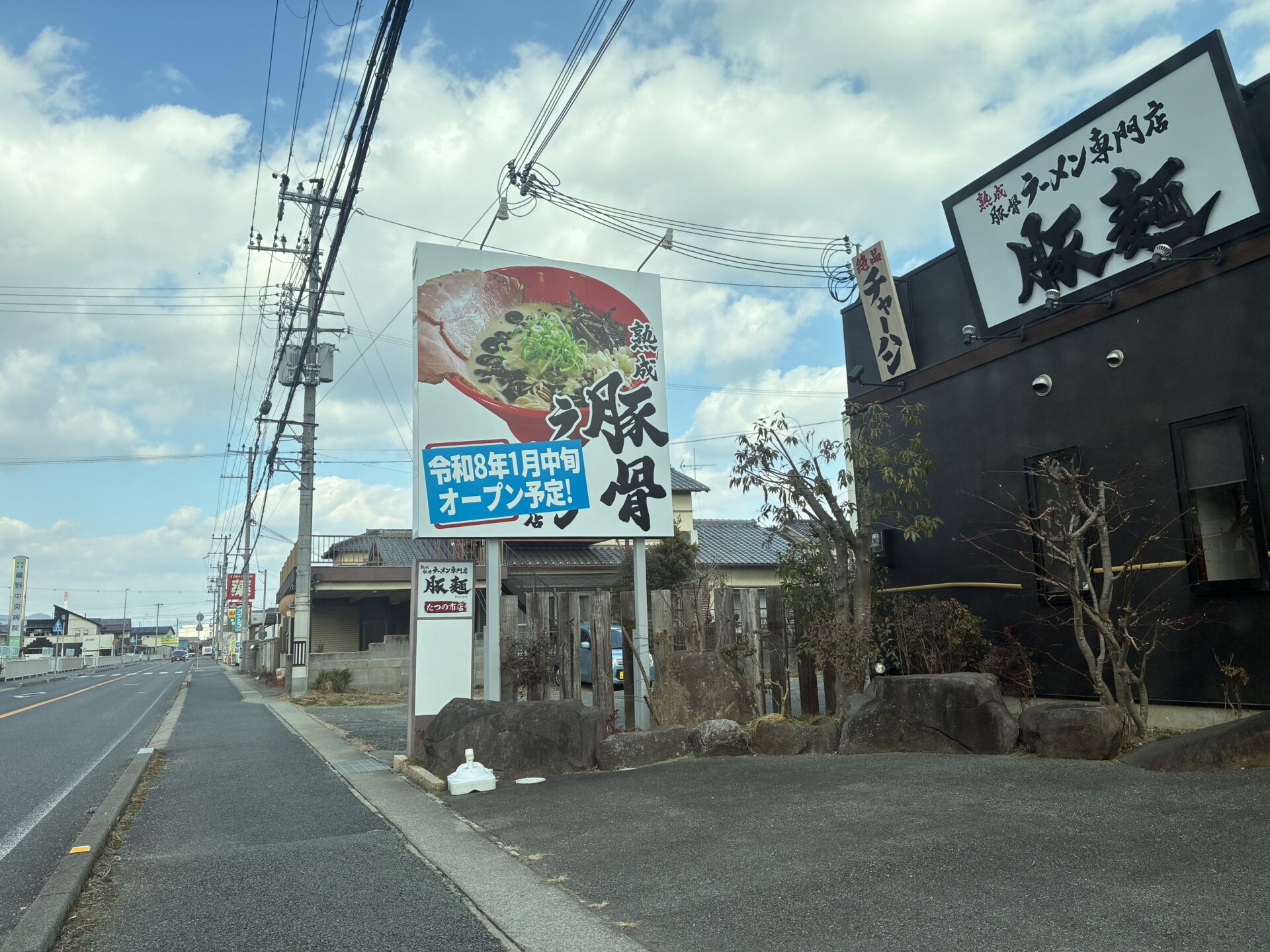 あれから3ヶ月、『豚麺 たつの市店』の【令和8年1月中旬オープン予定!】の張り紙無くなってる。