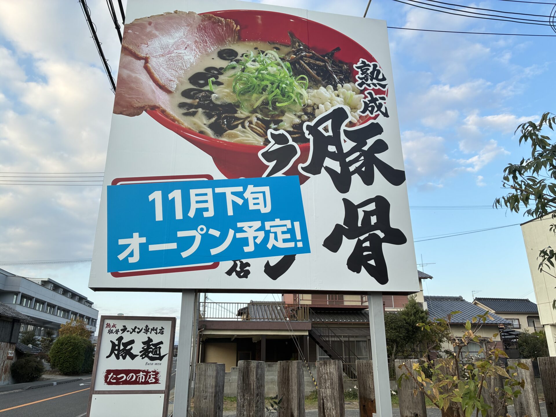 龍野中央病院の近くに豚骨ラーメン専門店『豚麺 たつの市店』がオープンするみたい!鰻の成瀬跡