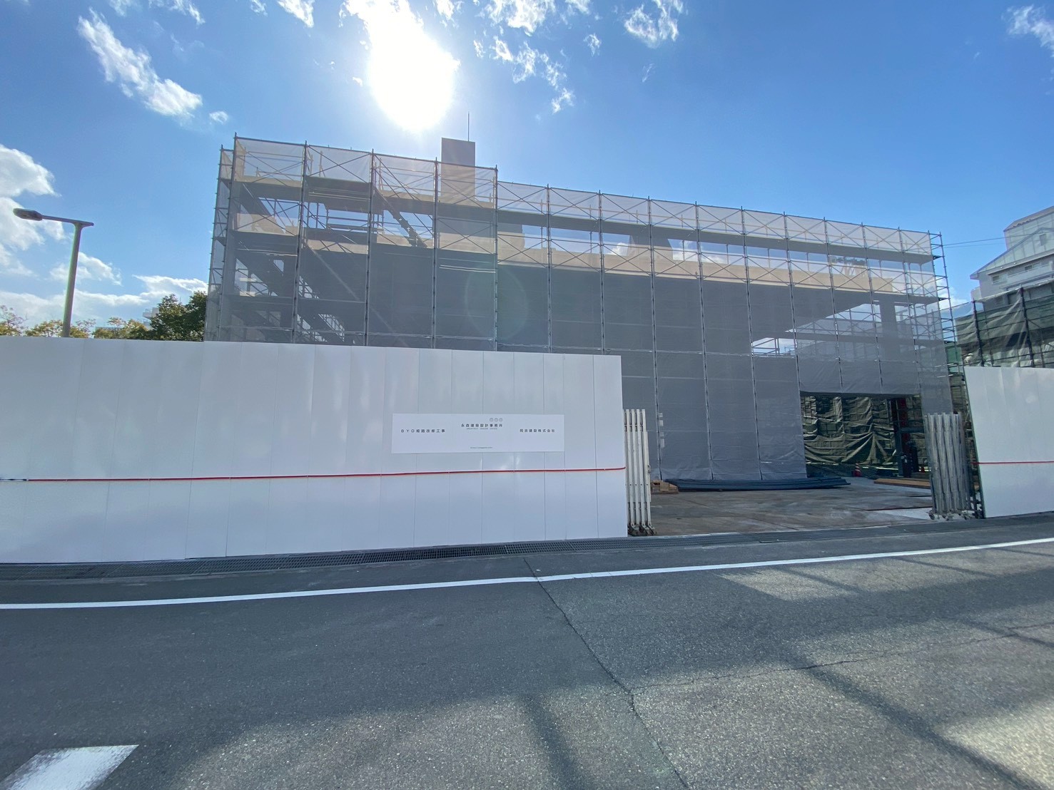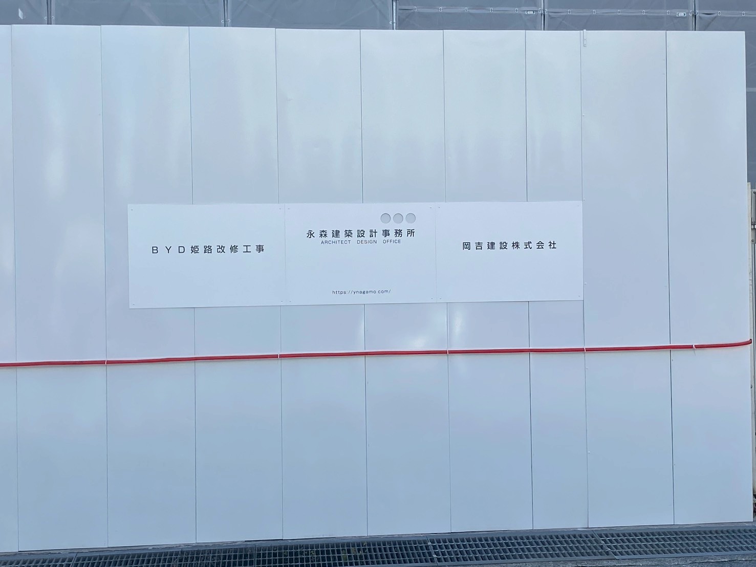 BYD姫路改修工事と書かれた看板が。現在のところ、現場には建築計画などの詳細な看板は見当たりませんでした。調べてみると、BYD姫路にヒットした求人情報がありました。住所の記載はありませんでしたが、この場所なのでは…?