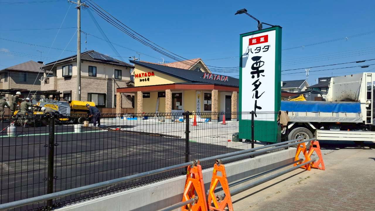 以前記事にも書いた、太子町にオープン予定の『菓子処 畑田本舗(ハタダ太子店)』の建物が完成間近、看板もお目見えしています。