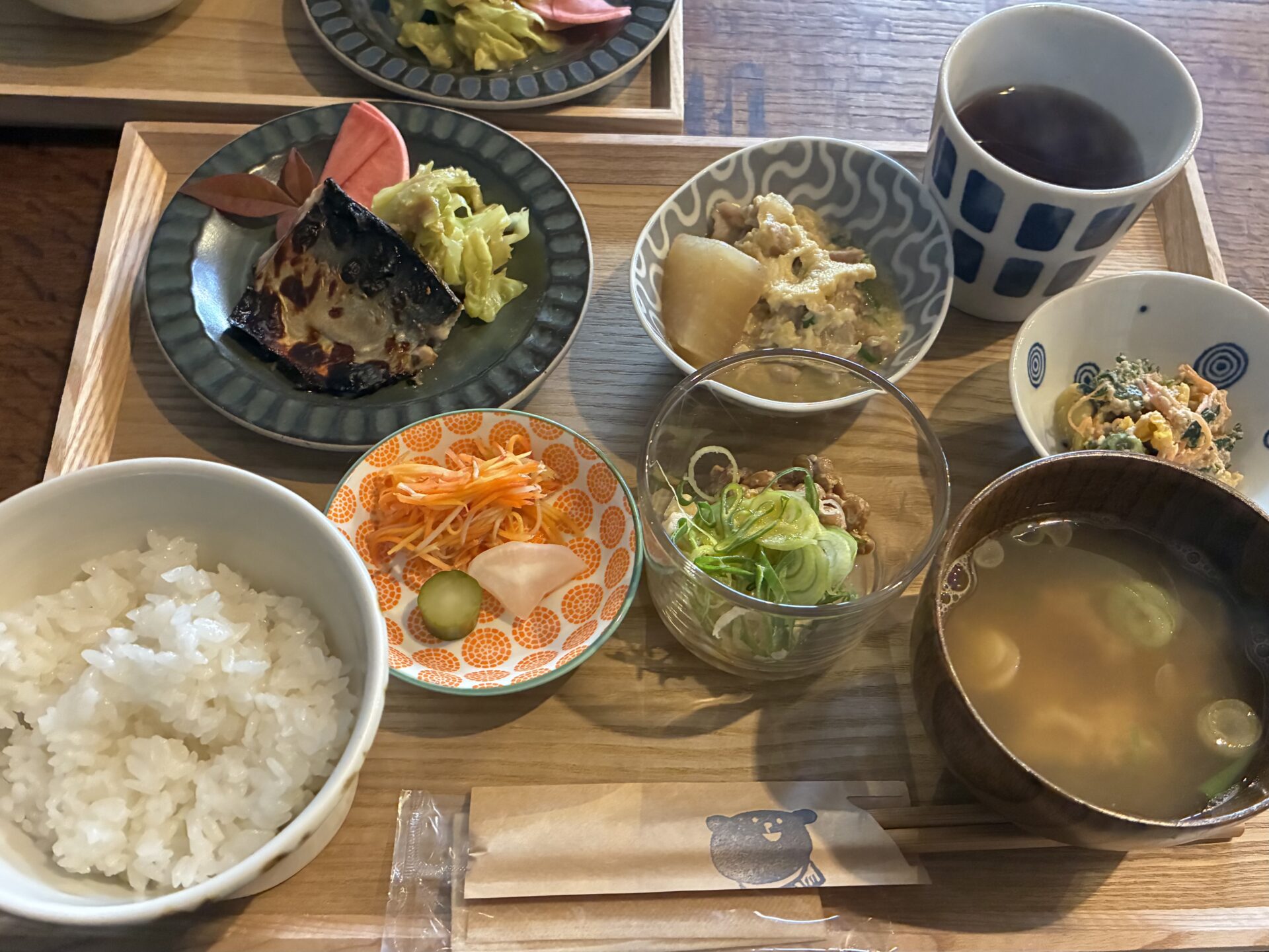 メニューは一汁三菜の朝ごはん一種類のみ!迷いまくる私にはありがたいです。写真左上の鯖の粕漬けは焦げ目もほどよく、ふんわりと柔らかくて美味しかったです。