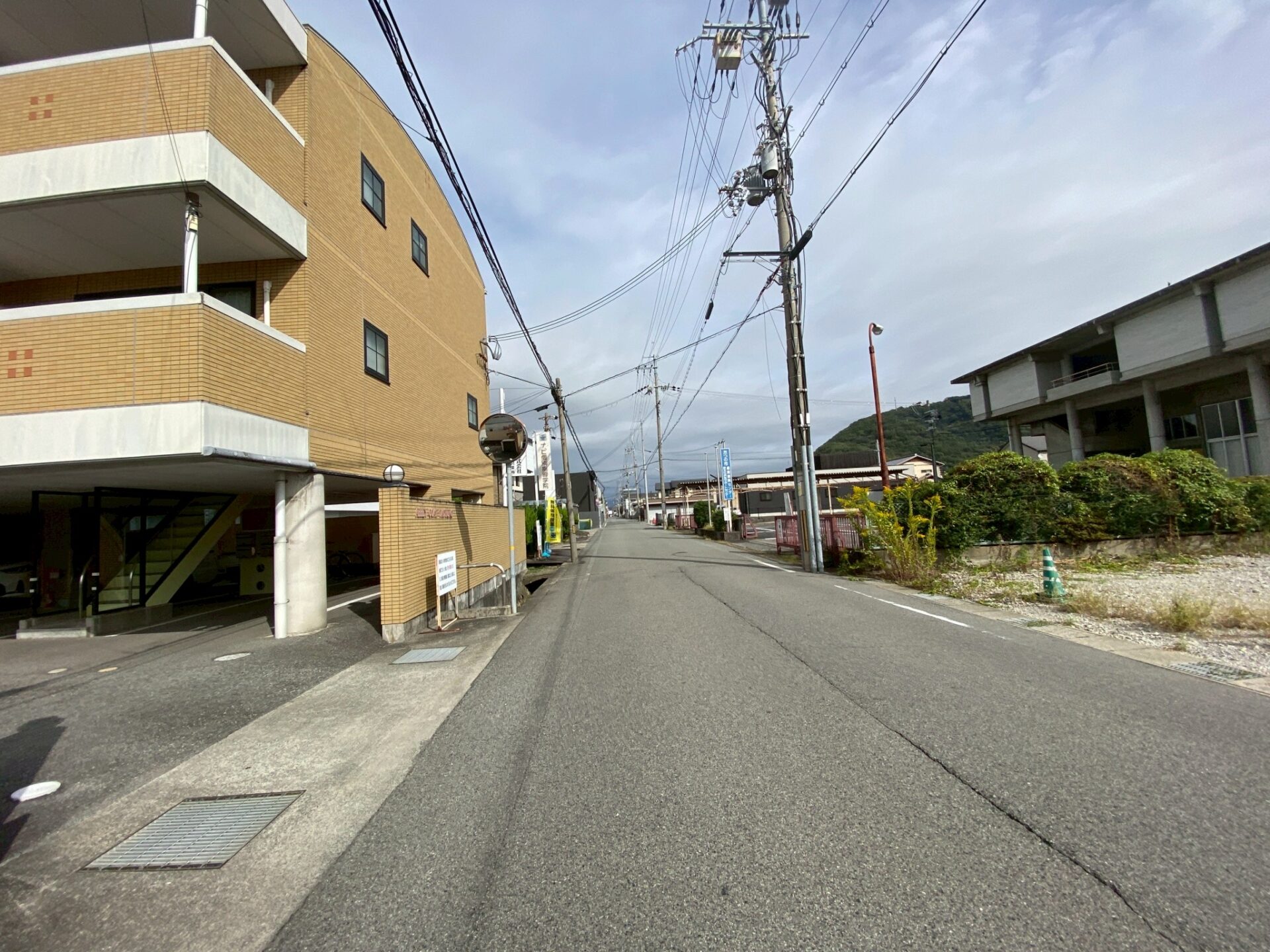 隣はたつの市産業振興センター。斜め前はナビ個別指導学院が入るビル。ずっと奥に兵友建設や湯本製作所の看板が見えます。