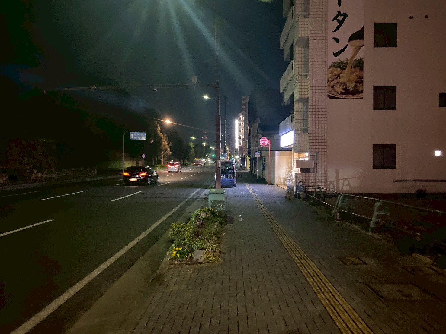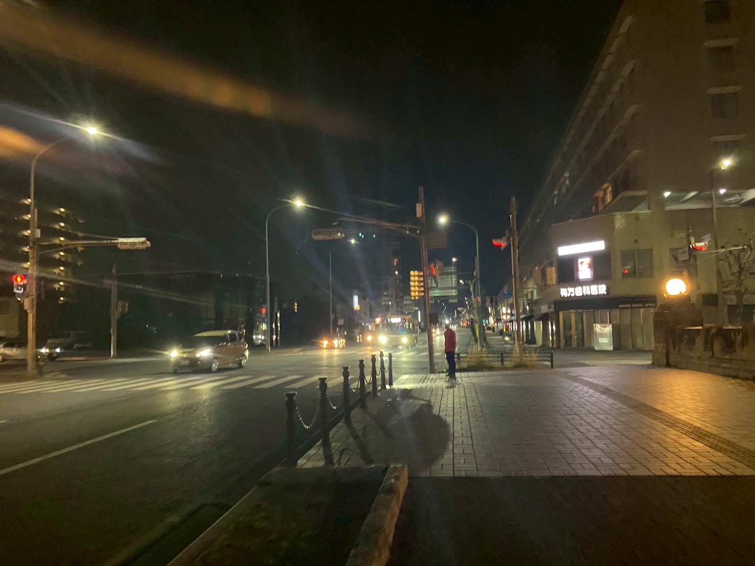 反対側には白鷺橋、信号の向こうに焼肉あづみ、船場東ビル。