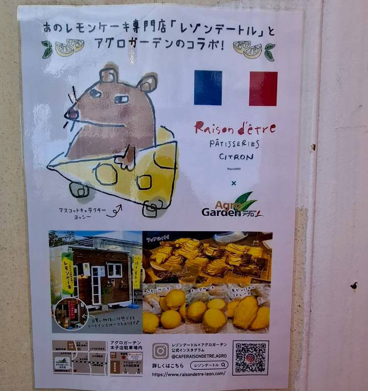 アグロガーデン公式HPによると、アグロガーデン太子店の駐車場内に、レモンケーキ専門店「レゾンデートル」とのコラボショップが2025年11月29日(土)よりオープンしているとのこと。