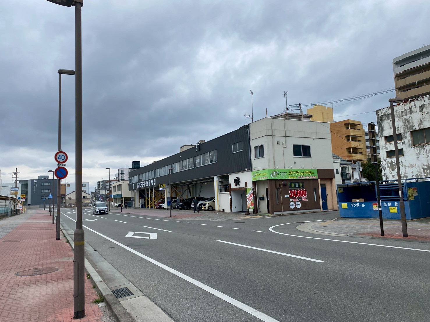 目の前には日興営業所。隣はconvert、交差点の向こうにモノレールの橋桁、その向かいにはタイムズの駐車場があります。