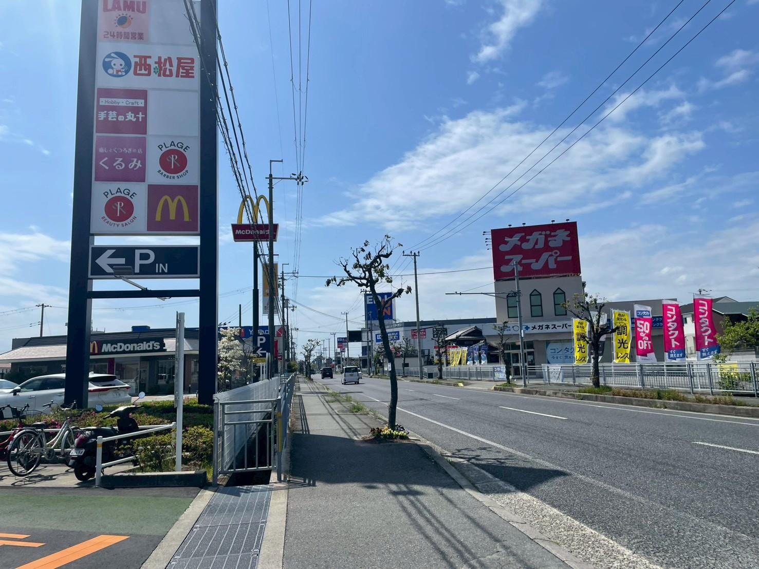 花田の信号方面、マクドナルド 姫路花田フレッツガーデン店、メガネスーパー姫路花田店、エディオン姫路花田店もあります。