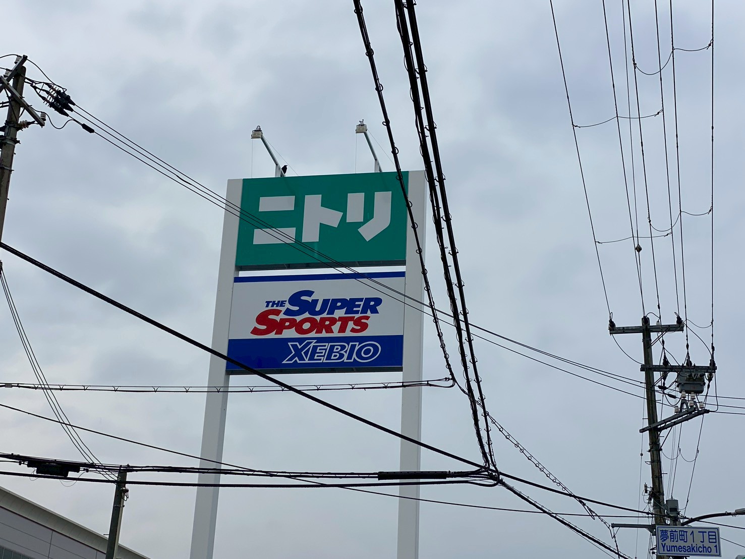 ニトリの看板の下に、『THE SUPER SPORTS XEBIO』の看板が設置されていました。