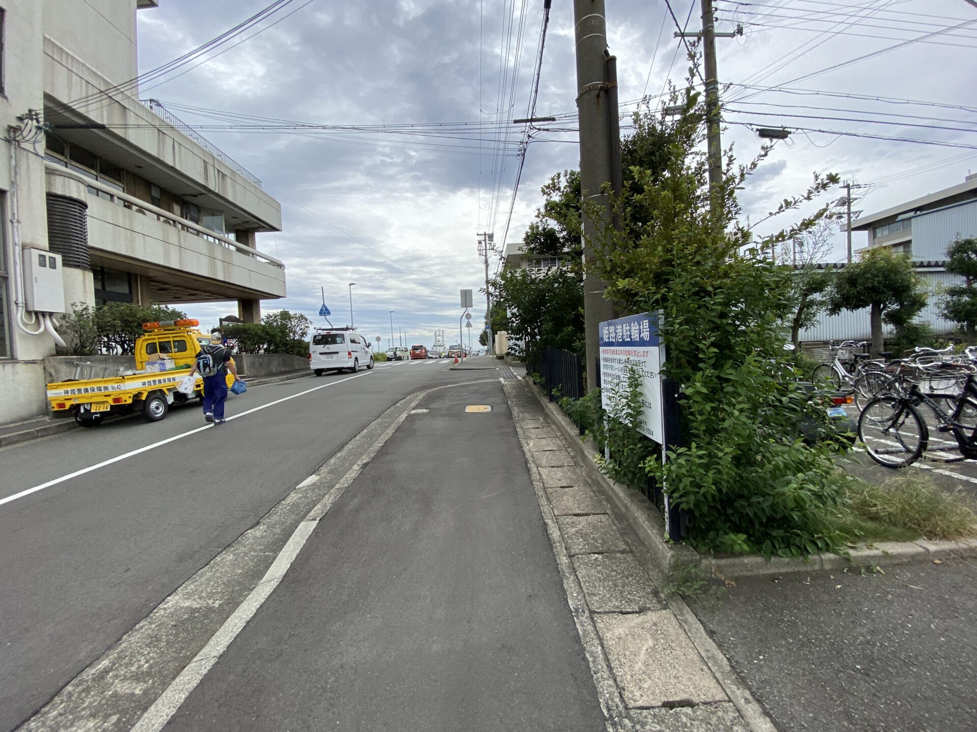 姫路港 小豆島フェリー 高速いえしま  姫路営業所横、自転車おきばがある前です。