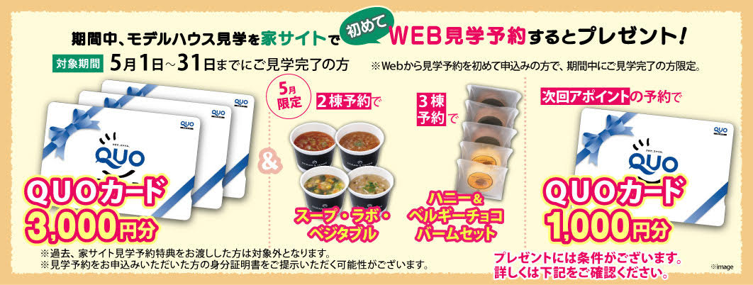 対象者:初めて家サイトのWEB見学予約をご利用の上、上記期間内に見学完了された方