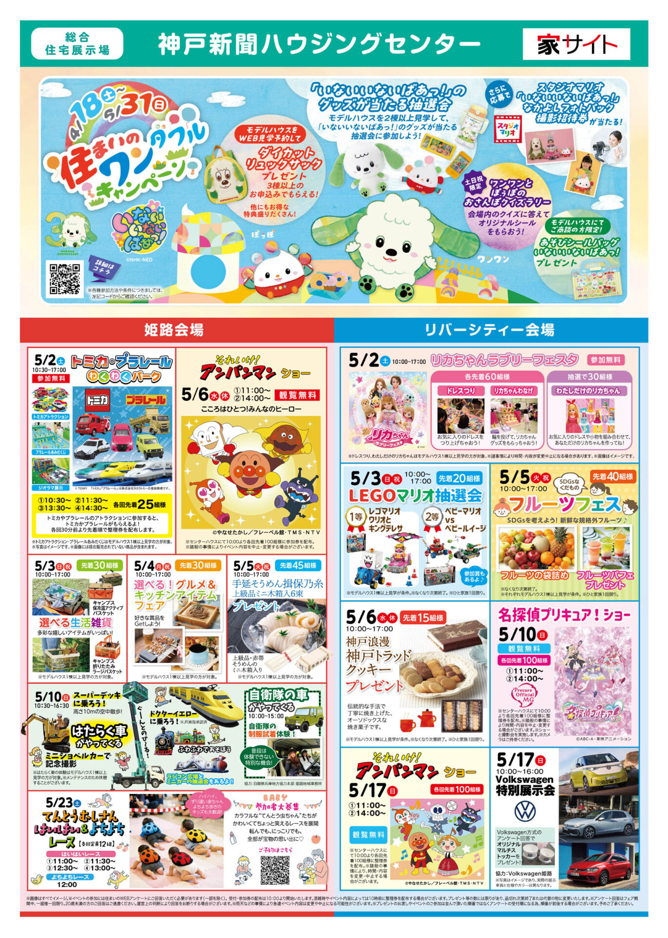 神戸新聞ハウジングセンターのゴールデンウィーク!姫路会場、リバーシティー会場ともに、毎日楽しいイベントが開催予定。