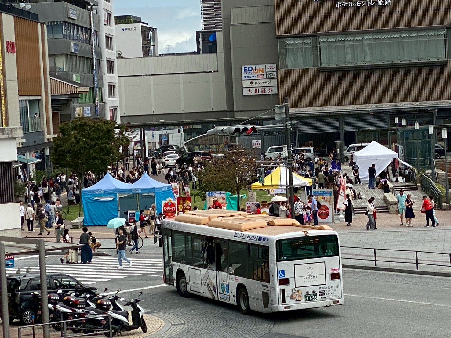 編集長ブドウちゃんが目撃!姫路駅北口すぐの姫路駅北にぎわい交流広場 2025年10月13日 12時頃の様子です。
