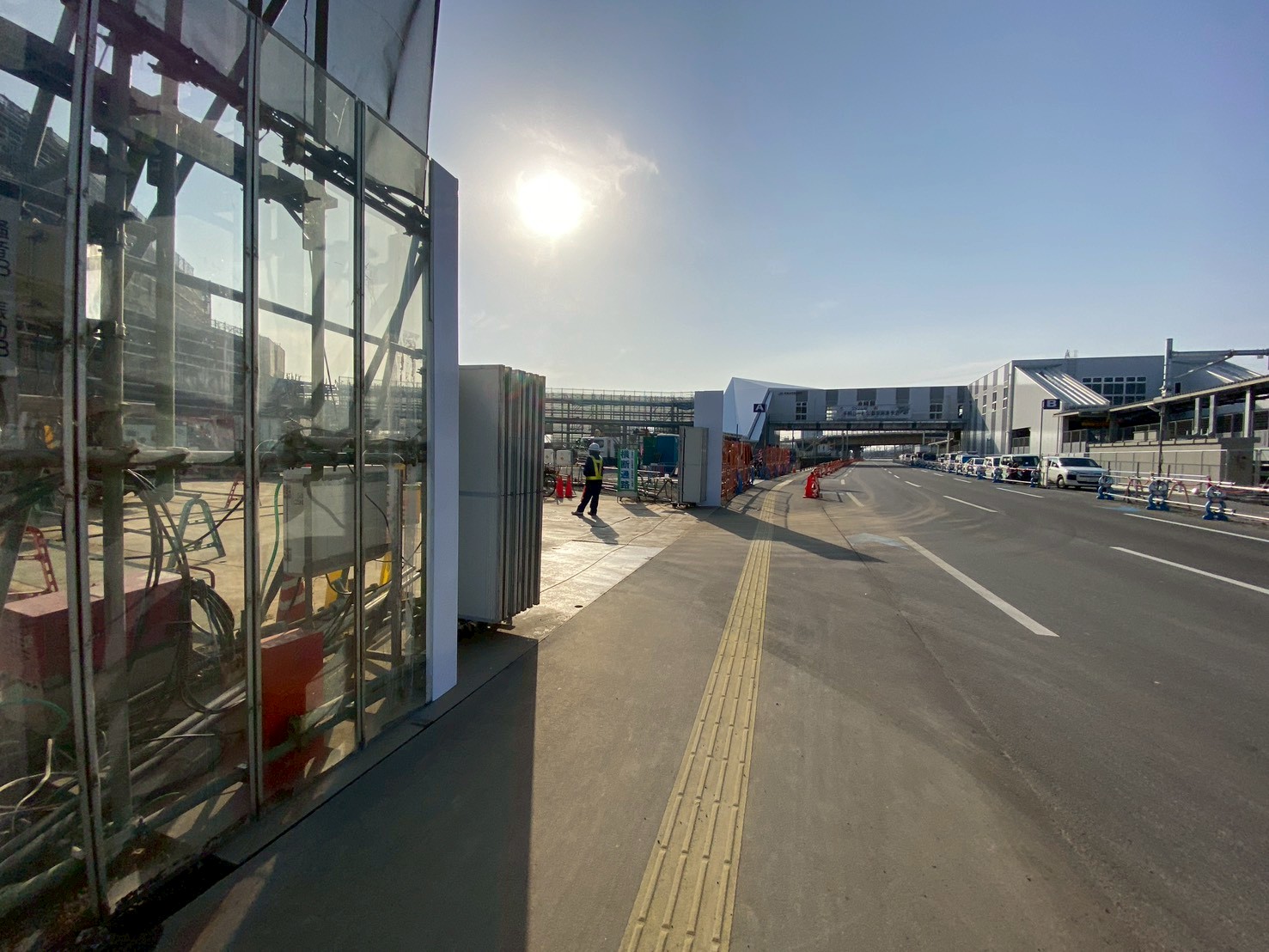新駅の連絡通路を降りてきたあたり↓