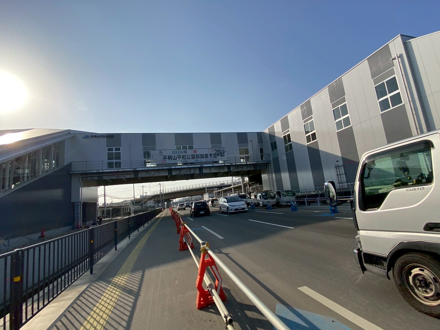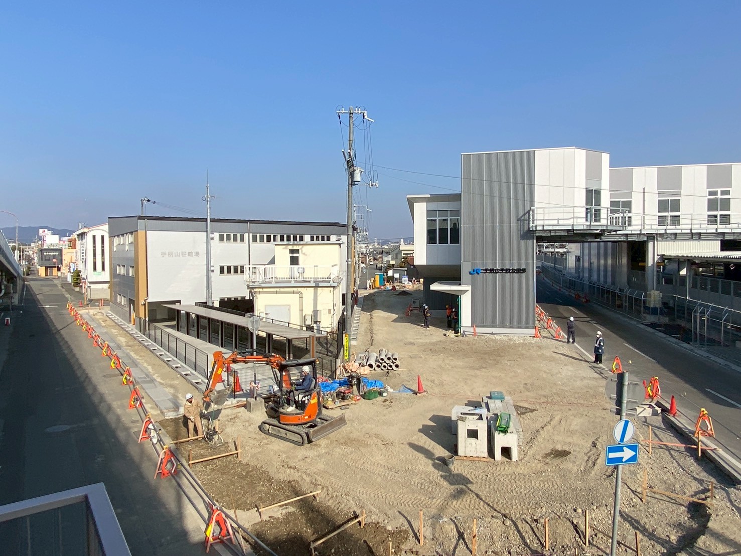 重機とかカラーコーンとか…工事が進められてる感じする!