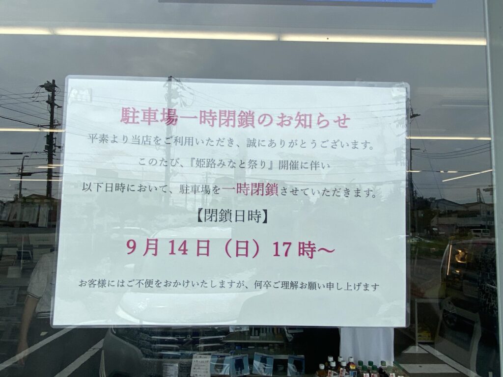 周辺のコンビニでは、17時から駐車場を閉鎖するとのお知らせがあったよ。花火目的での駐車はできないからね!混雑対策(たぶん)のため、店内のトイレを終日使用不可にしている店舗もありました。