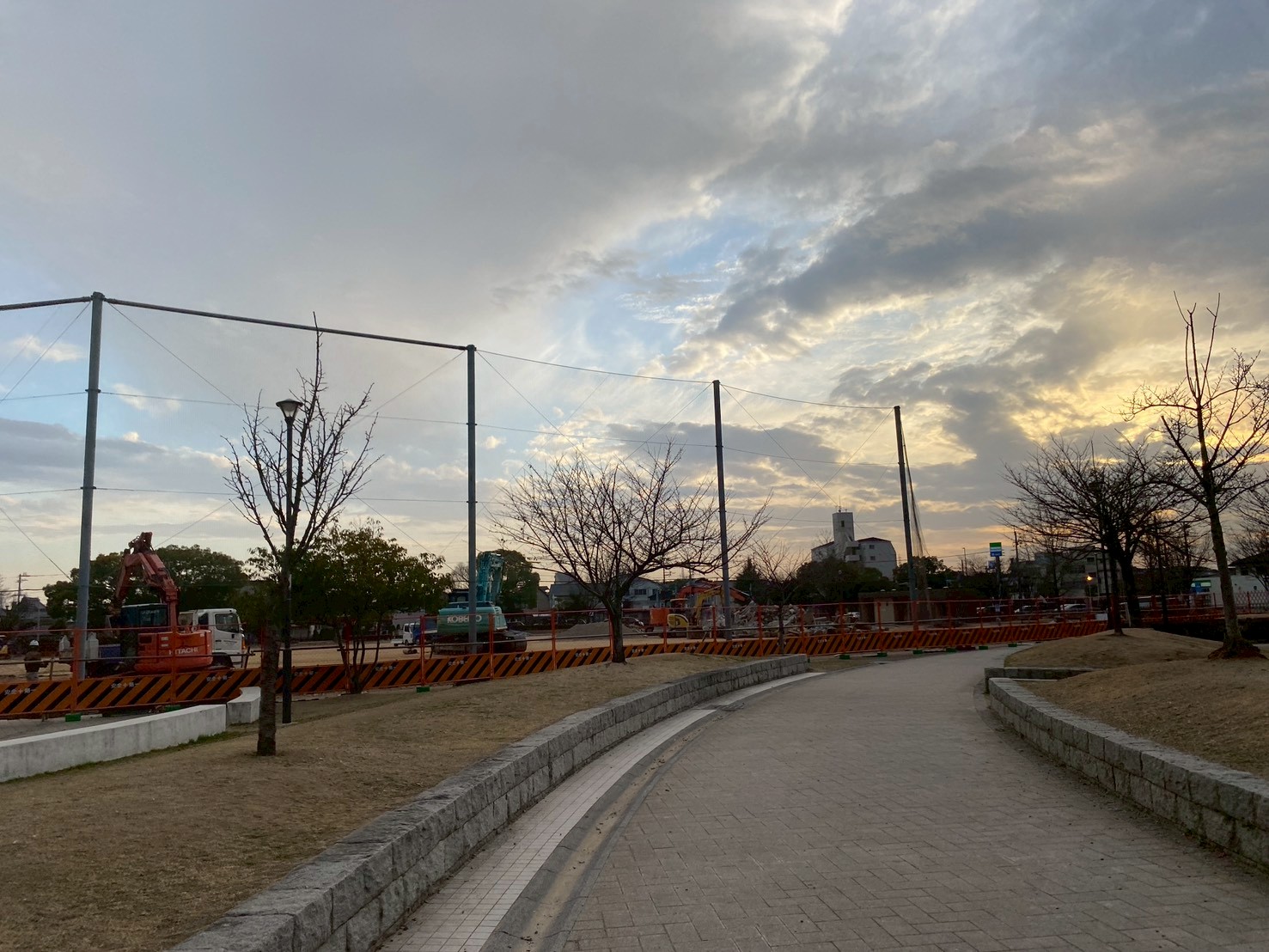 リバーシティーの公園(飾磨中央公園)の工事が進んでる。現在の様子