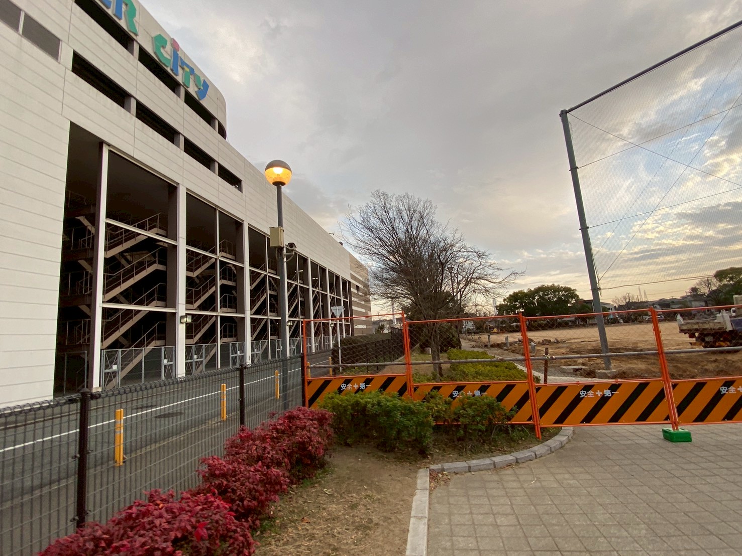 リバーシティーの西側、平面駐車場の南側にある飾磨中央公園に、囲いが設置されています。
