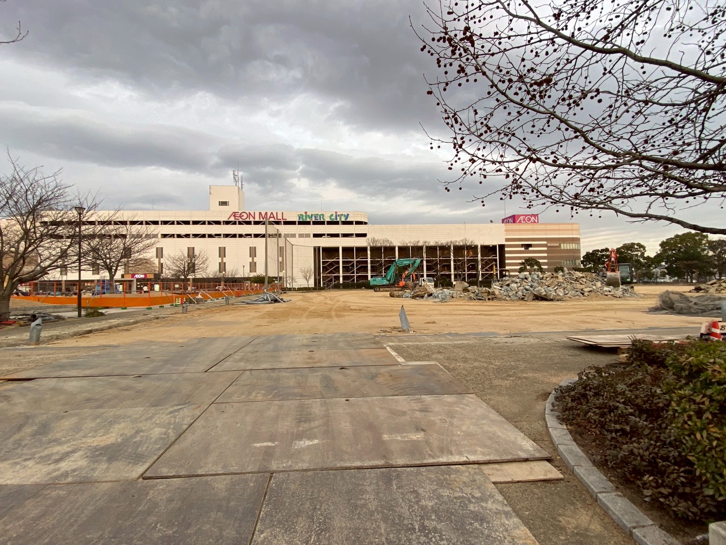 リバーシティの公園やグラウンドを封鎖して撤去工事が行われてます。どうなってしまうのでしょうか。また駐車場に戻るんでしょうか。調べて欲しいです。よろしくお願いします。