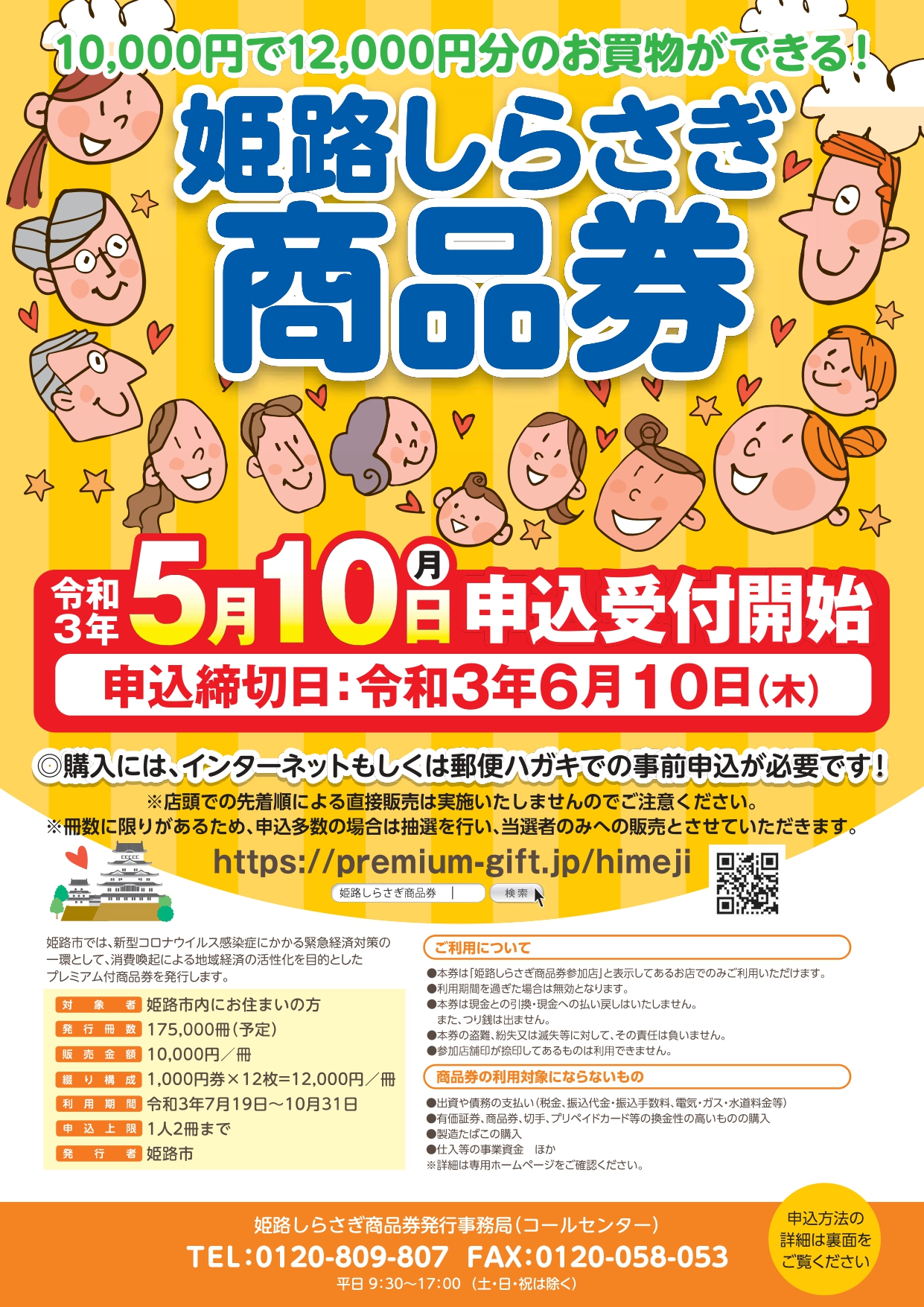 地域経済を活性化させることを目的とした、姫路しらさぎ商品券の購入申し込みが5月10日より始まるみたいです。