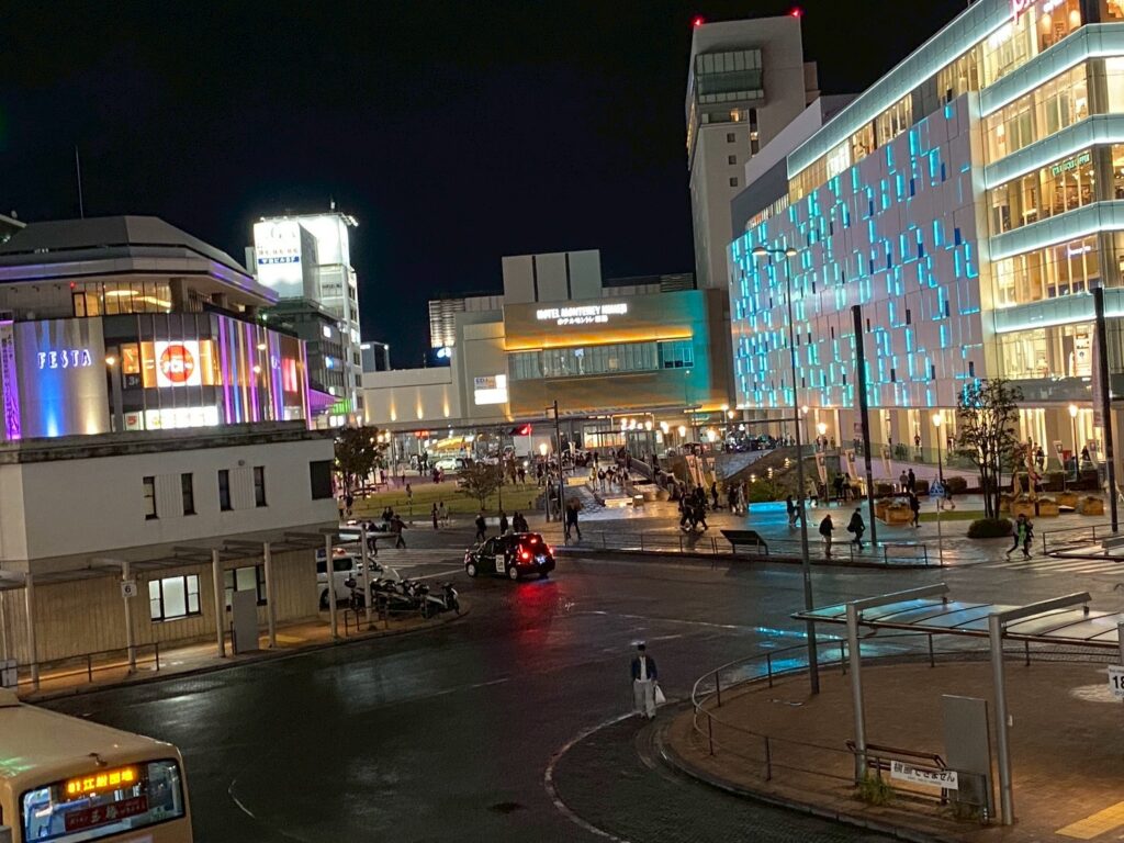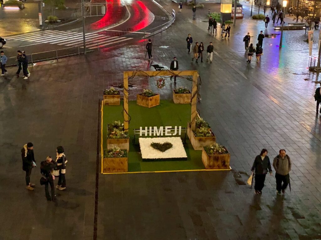 姫路駅北口すぐ、姫路ピオレ前の芝生広場です(21:15頃)↓