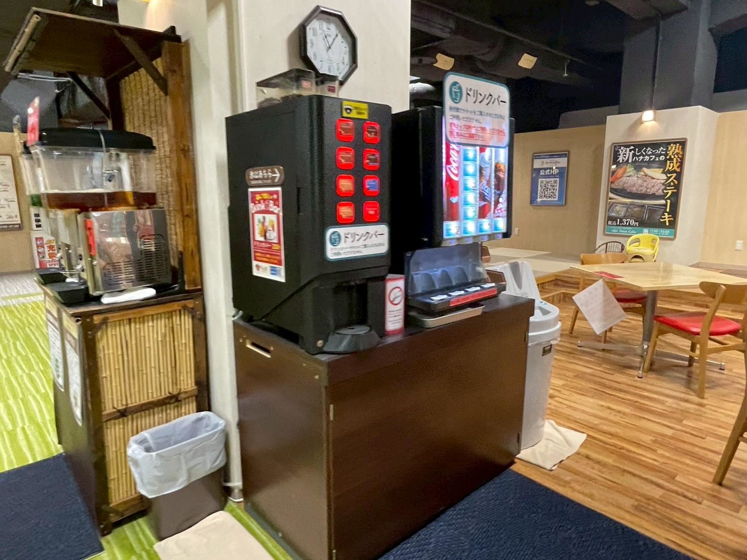 ドリンクバー完備。お値段税込み250円。大人も子供も嬉しい!!!絶対に頼むやつですね。