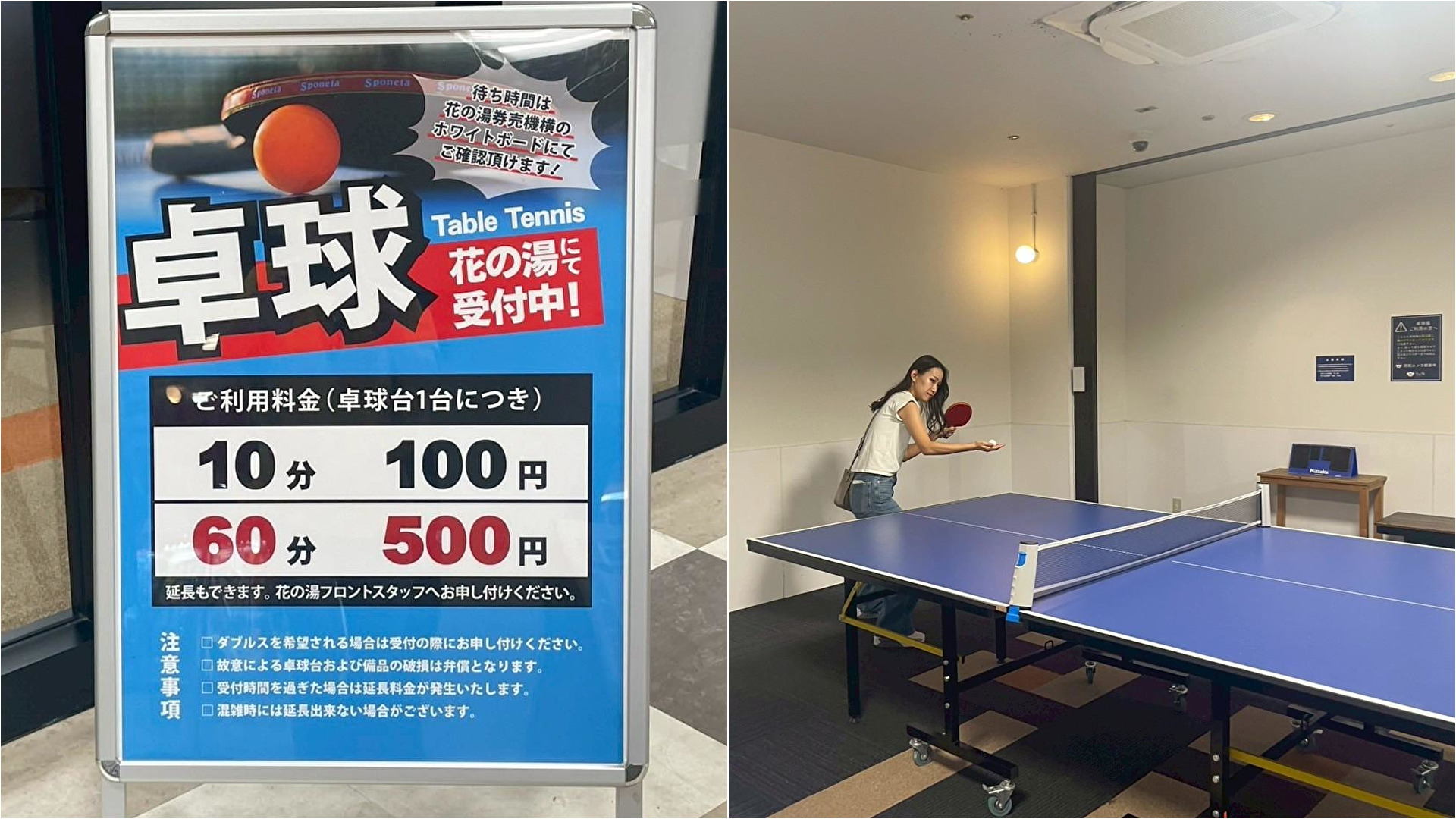 国民的湯上りスポーツ、卓球。花の湯で受付してくださいね。