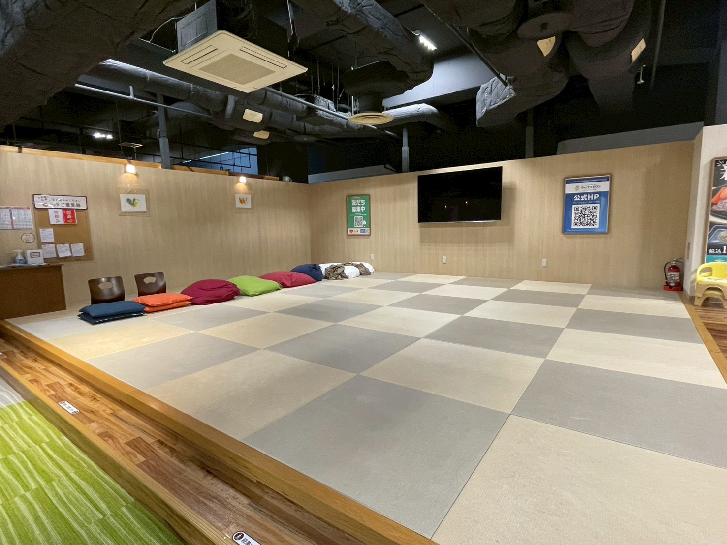 テレビが見たい方はコッチ!以前からある畳スペースも、これまでと同様に利用できます。こっちの畳スペースには、テレビ&ヨギボーがあるよ。