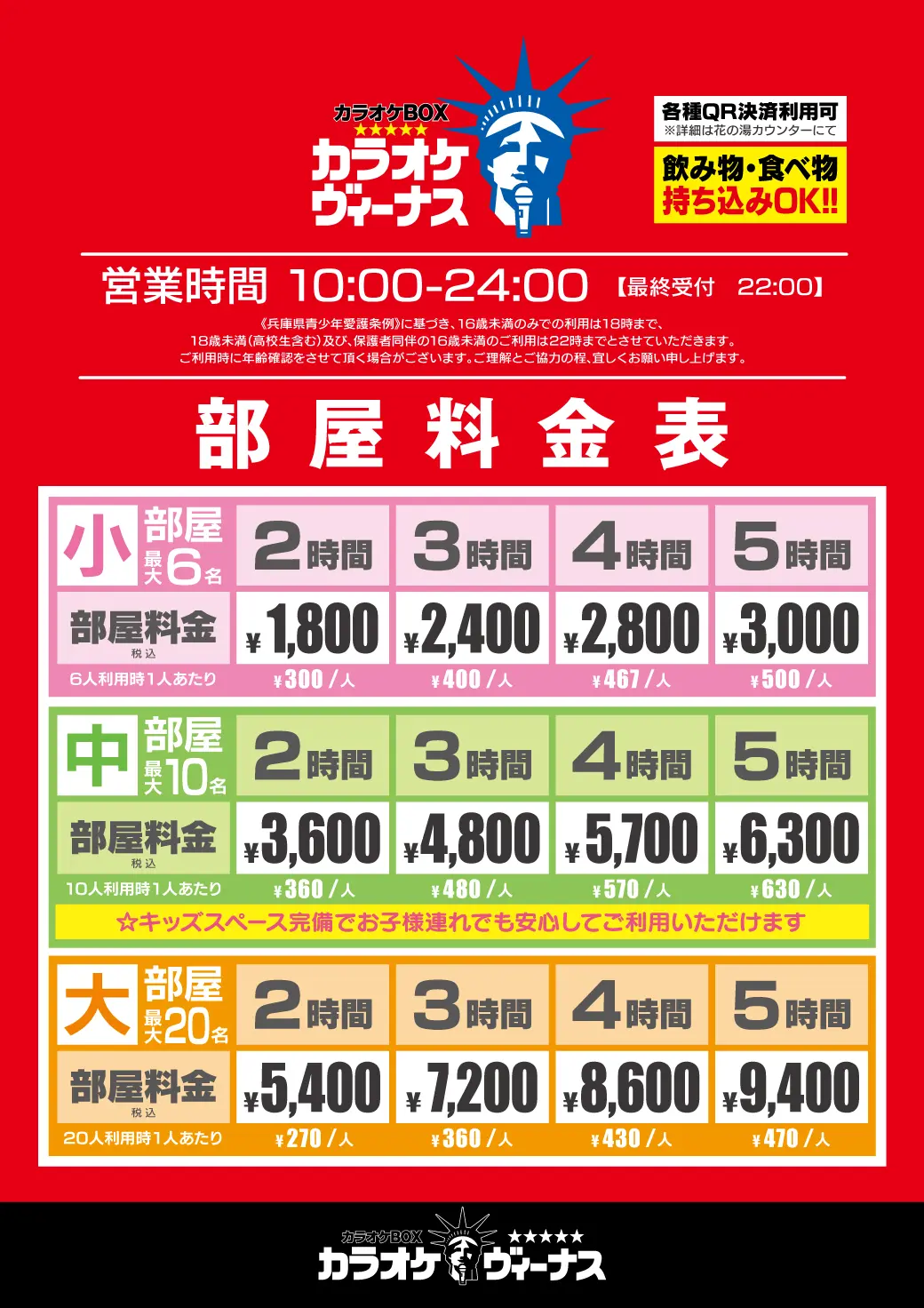 カラオケヴィーナス 10:00~24:00(最終受付22:00)