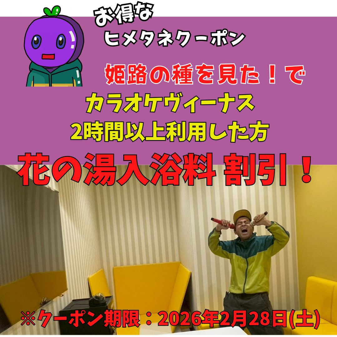 ★カラオケヴィーナス2時間以上利用で花の湯入浴料が