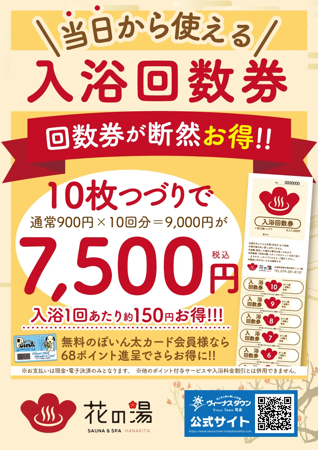 生まれ変わった花の湯 花北では、回数券が断然お得!